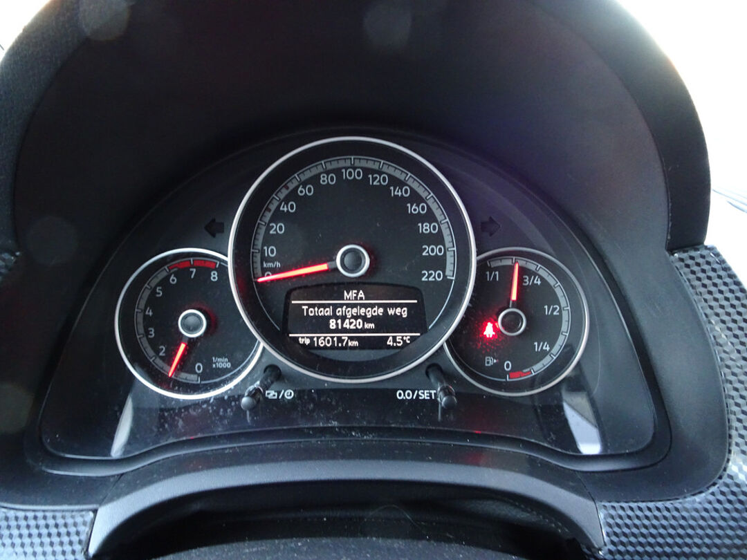 Kinderfietsje niet gezien bij het inparkeren? Dat gebeurt u nooit meer. Daar zorgt de achteruitrijcamera wel voor! Omdat u nu eenmaal niet overal ogen heeft, is deze Volkswagen Up! voorzien van een achteropkomend verkeer waarschuwing die registreert wanneer de afstand tot uw achterligger te krap is. Natuurlijk is er ook automatische airconditioning aanwezig. Alle audioknoppen letterlijk onder handbereik: dat kan met de audiobediening op het stuur. De automatisch inschakelbare verlichting en regensensor zorgen dat onderweg automatisch de verlichting en de ruitenwissers worden ingeschakeld. Daarmee nemen ze u veel werk uit handen. En dan is deze auto ook nog eens voorzien van cruise control, lederen stuur, centrale deurvergrendeling met afstandsbediening en boordcomputer.