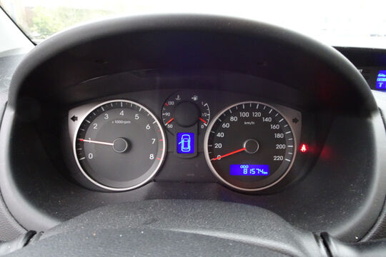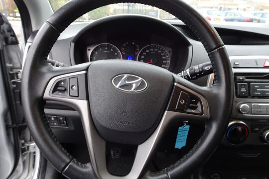 In deze i20 vindt u schakelaars op het stuur om het audiosysteem te bedienen. Deze auto heeft airconditioning aan boord.